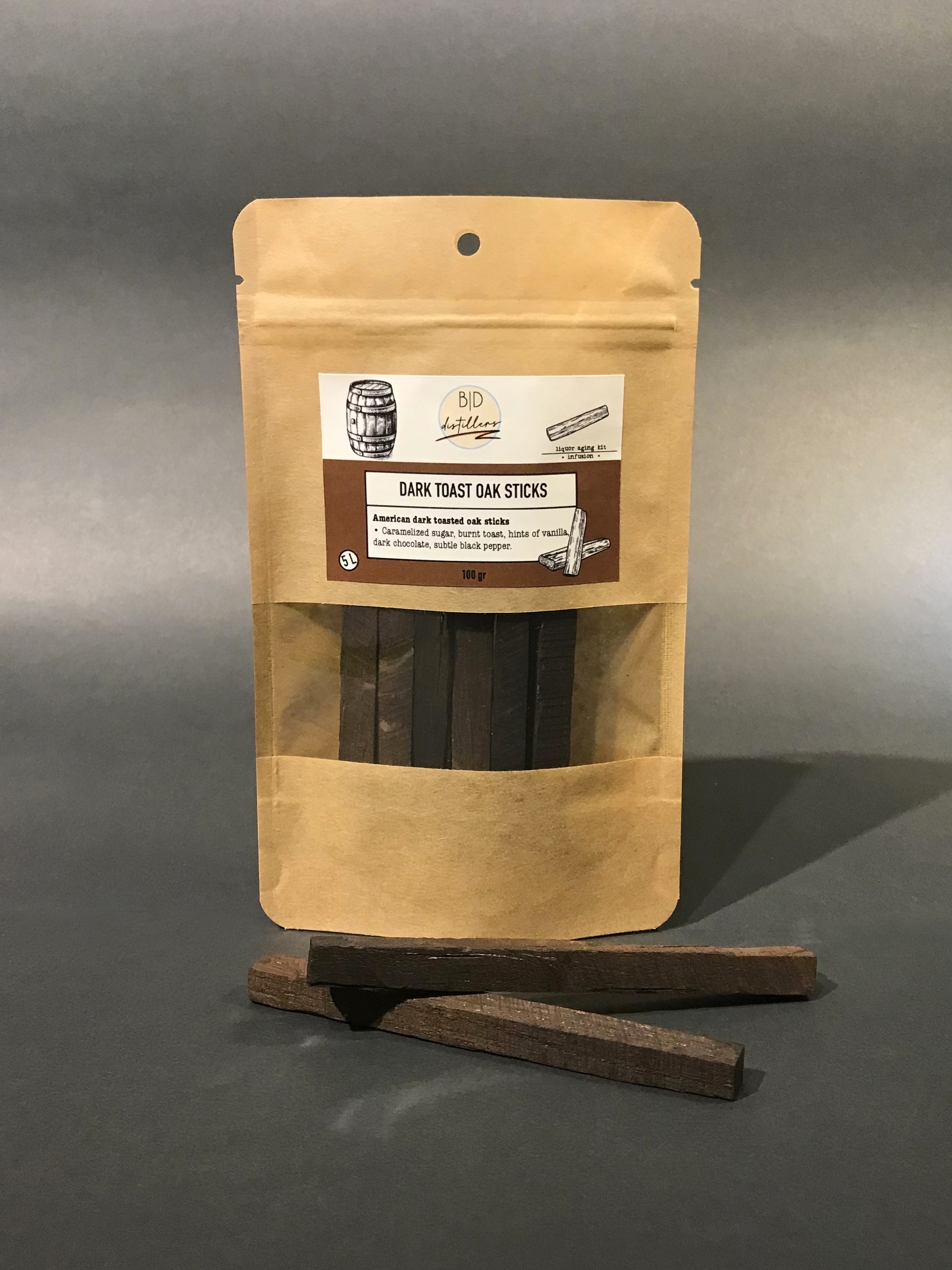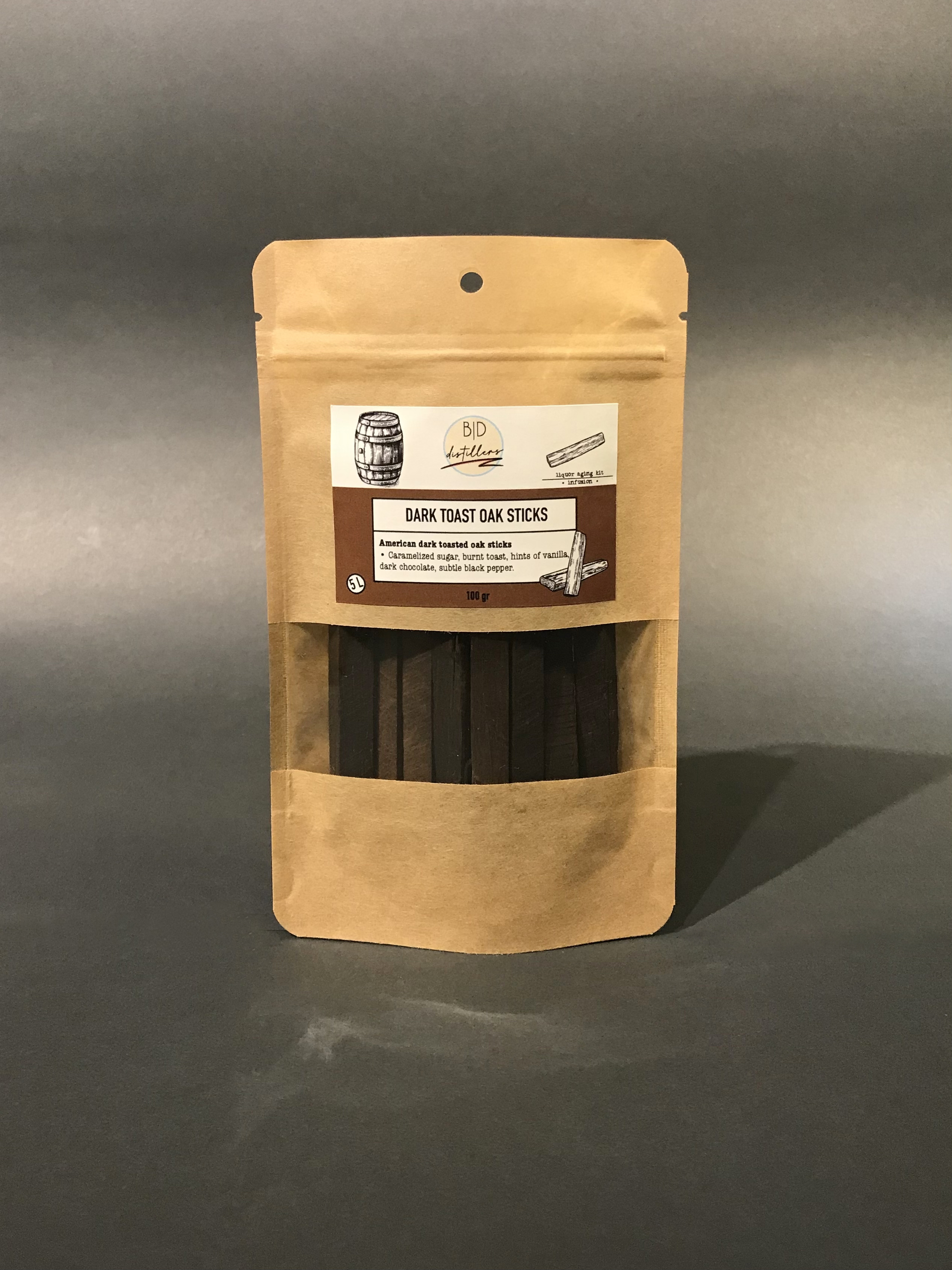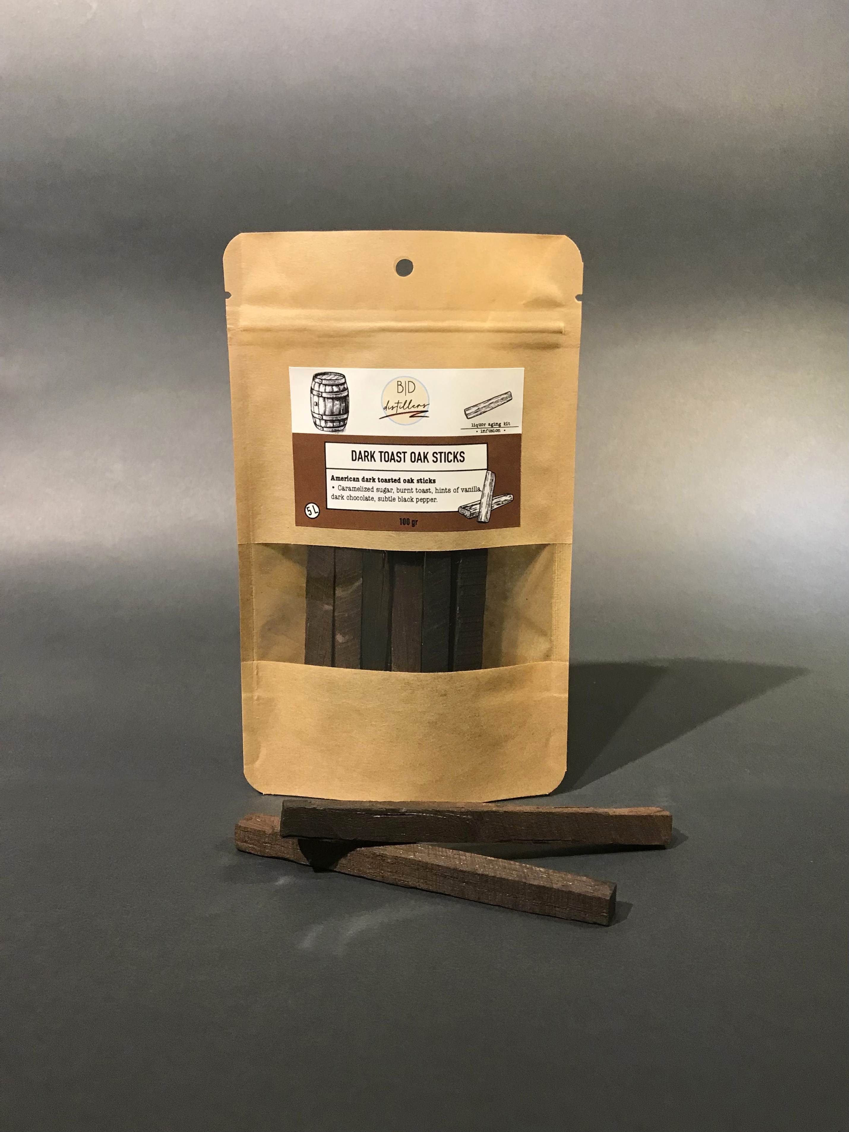 Amerikan meşesinden kesilerek elde edilen çubuklar önce odun ateşinde kavrularak karamelize edilmiş, ardından isli bir aromaya ulaşmak için yüksek ısı uygulanarak tütsülenmiştir.